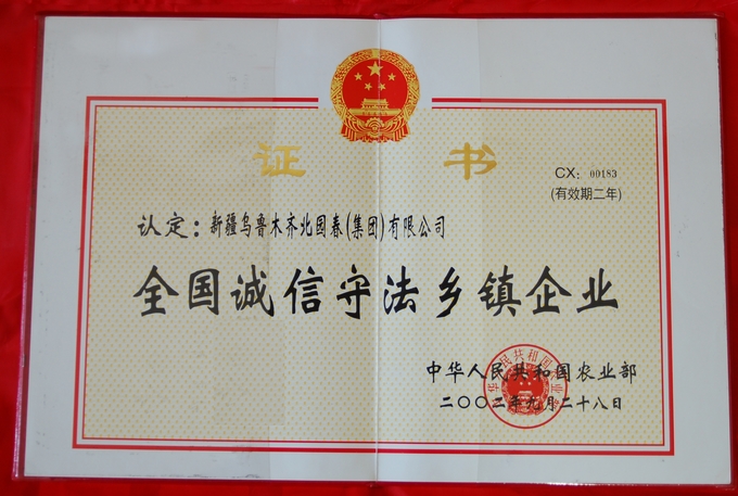 2002年9月,北园春集团公司被国家农业部评为“全国诚信守法乡镇企业”
