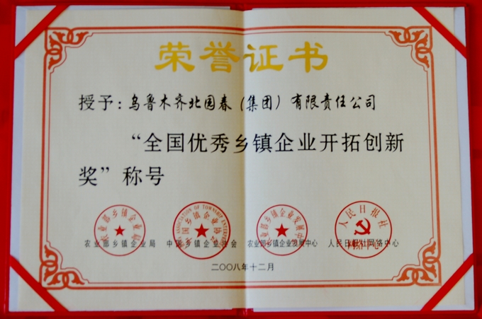 2008年12月,北园春集团公司荣获农业部乡镇企业局、农业部乡镇企业发展中心等单位联合颁发的“全国优秀乡镇企业开拓创新奖”称号。